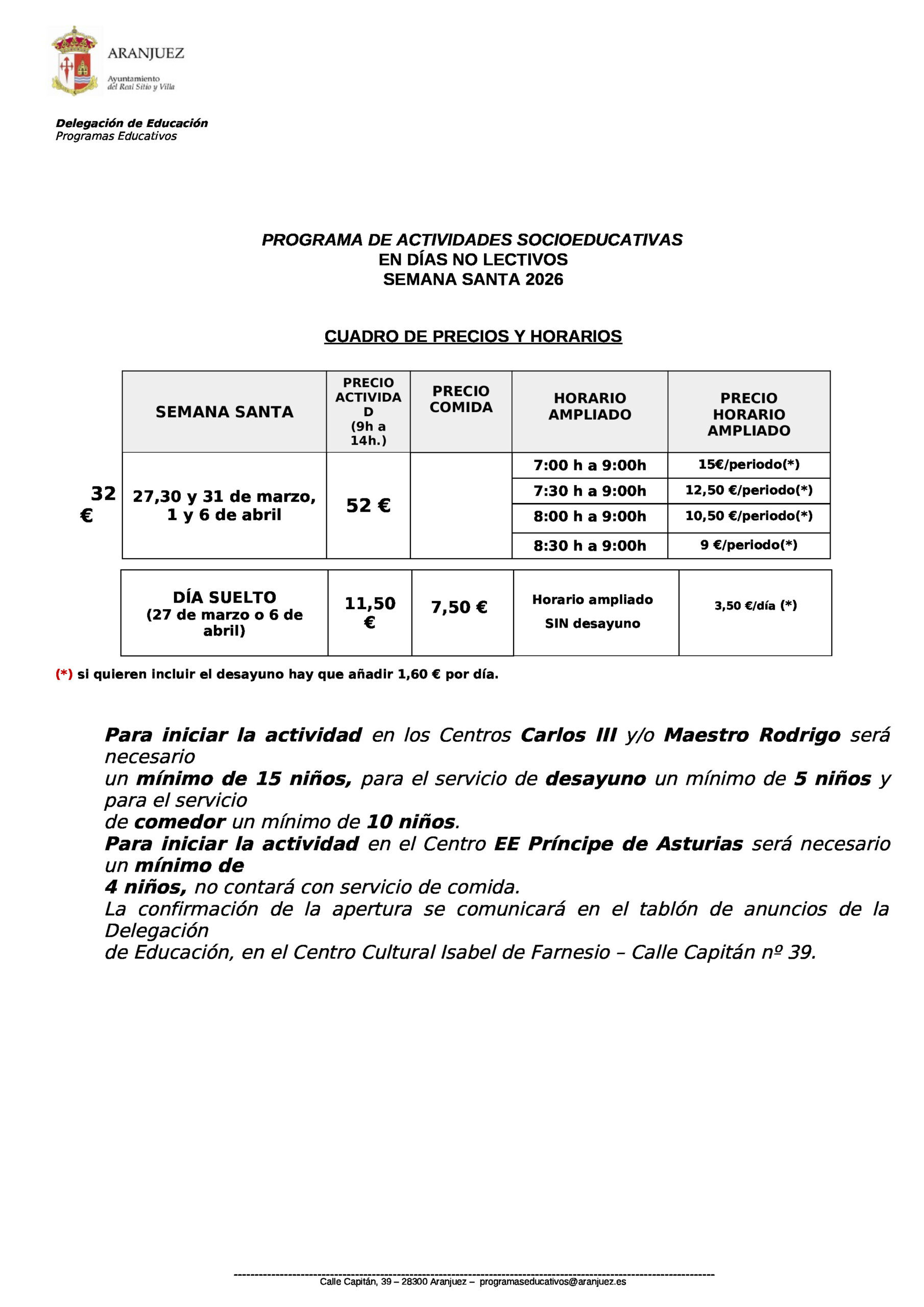 El 4 de marzo a las 10:00 horas se abre el plazo de inscripción para el campamento de Semana Santa de Aranjuez